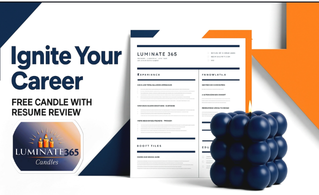 Balancing your career goals and personal growth doesn’t have to be stressful, let’s make it brighter. When you book a professional resume review or career coaching session, you’ll receive a free handcrafted Luminate 365 candle to help you relax, refocus, and recharge.